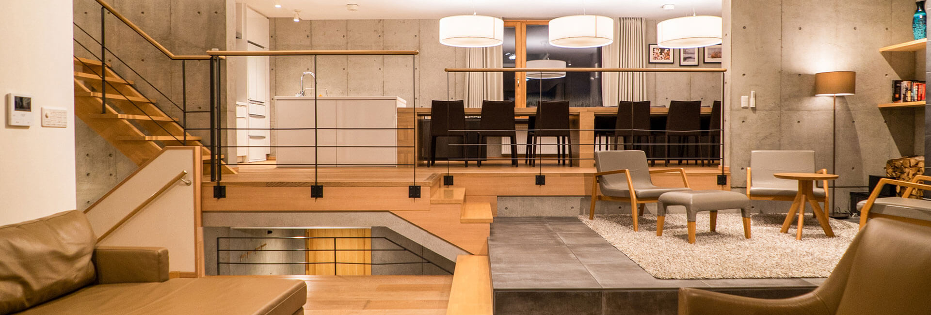 Behind Mizunara Chalet’s bold appearance and rectangular-shaped façade lies a warm and ultra-stylish four-bedroom luxury mountain lodge which can sleep up to ten people. Centrally located in Hirafu’s lower village, this chalet is an excellent choice for anyone who appreciates modern architecture and minimalist design.